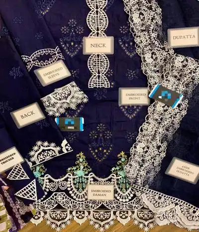 Lawn Selvees with Heavy Embroidery and a Serpentine Cuff