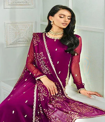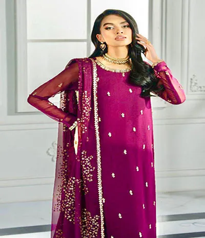 Purchase dresses made of chiffon online in Pakistan. Discover the finest luxury chiffon collections’ embroidered suits, chiffon suit malai, and dresses.