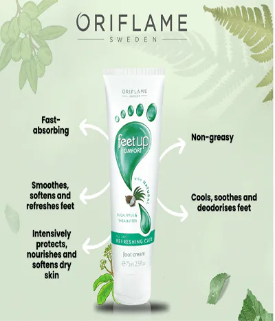 foot creams oriflame thick, revitalizing cream that softens and smoothes tough, dry skin. Contains genuine Shea and Eucalyptus oil in a non-greasy, quickly absorbing composition.